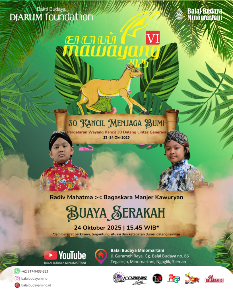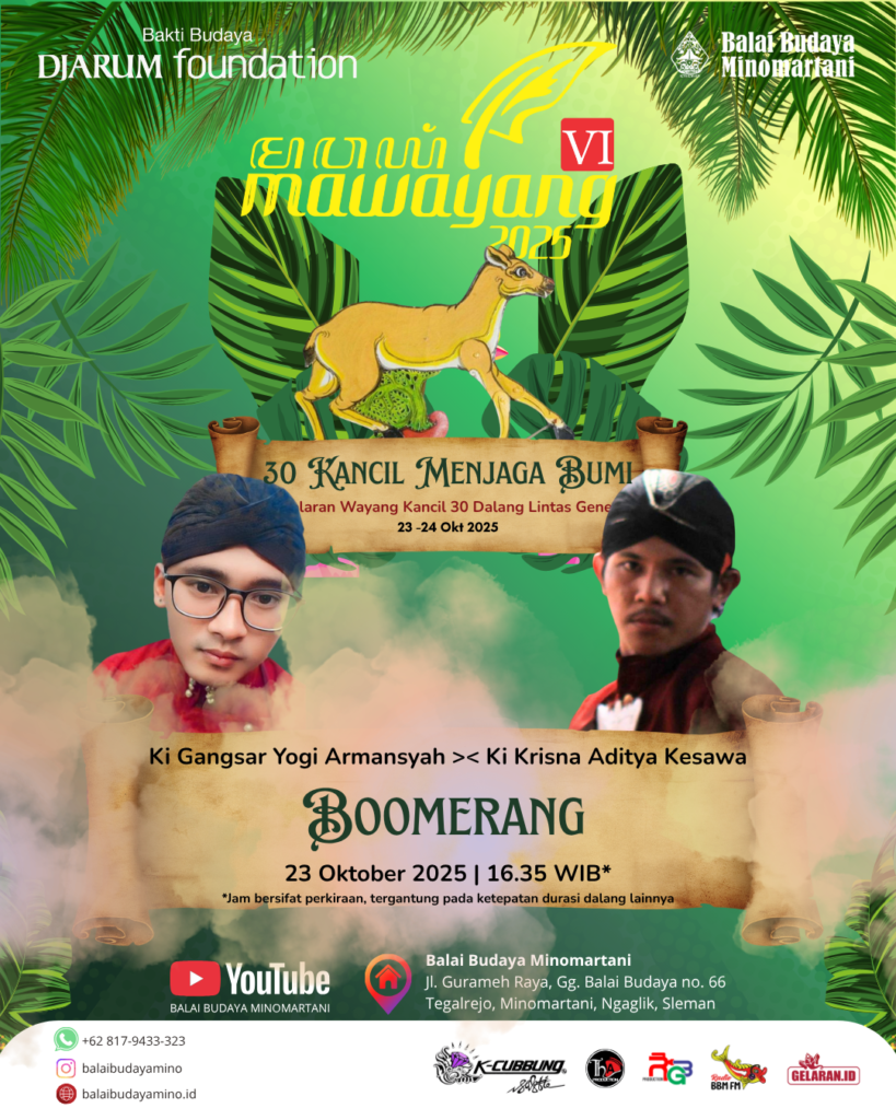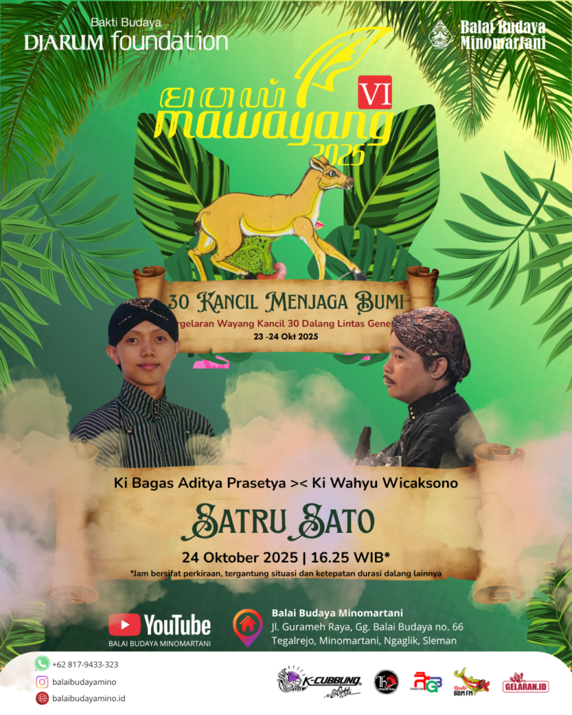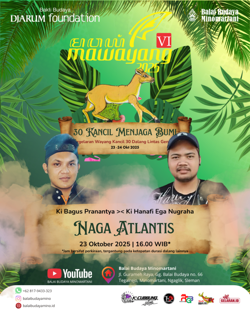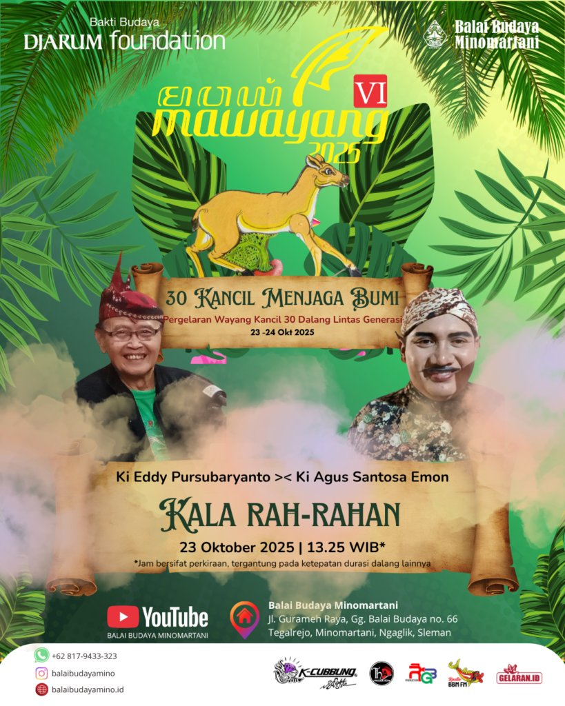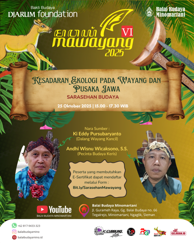 Melalui gelaran Wayang Kancil dan Pameran Keris ini, MAWAYANG mengajak kita untuk kembali kepada kepribadian orang Jawa yang sesungguhnya, yaitu menempatkan alam bukan hanya sebagai “wadah”, tetapi bahkan sebagai “sedulur” yang di dalamnya mengandung makna empati. Ya, orang Jawa memang (sebenarnya) berempati tidak hanya kepada sesama manusia, tetapi kepada sesama mahluk ciptaan Hyang Maha Agung, baik mahluk hidup maupun benda-benda mati dan bentang alam itu sendiri.